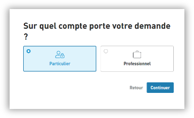 Étape 2 : Choisissez votre type de compte, « Particulier » ou « Professionnel », puis renseignez vos informations