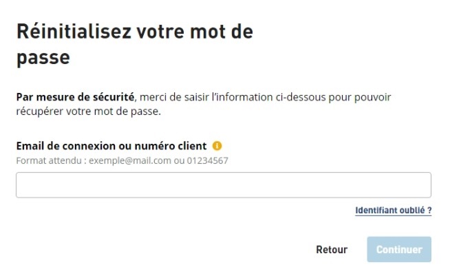 Étape 2 : Renseignez votre identifiant (email ou numéro client)