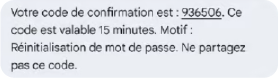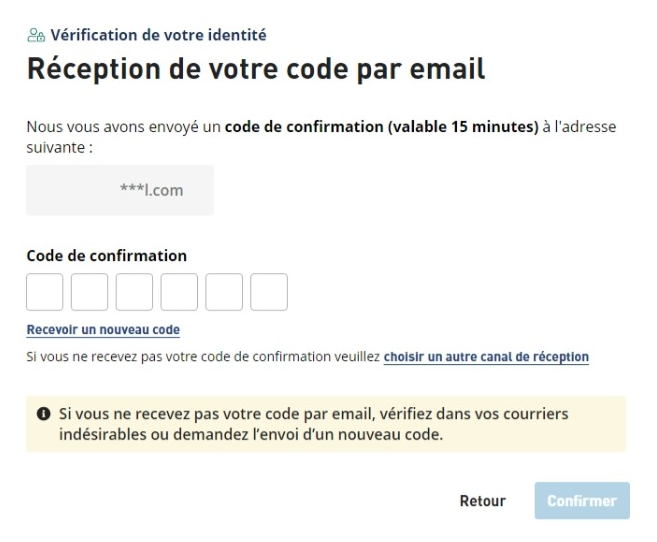 Étape 3 : Saisissez le code de confirmation reçu par email ou sms