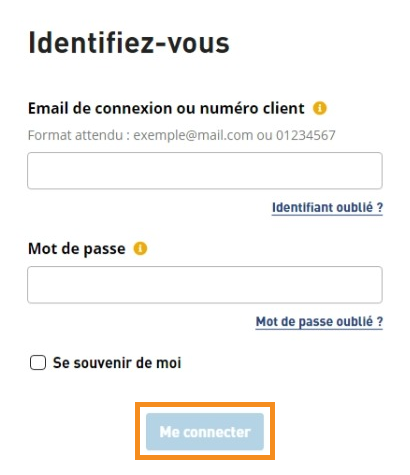 Étape 4 : Saisissez votre identifiant (email ou numéro client) et votre mot de passe puis cliquez sur « Me connecter »